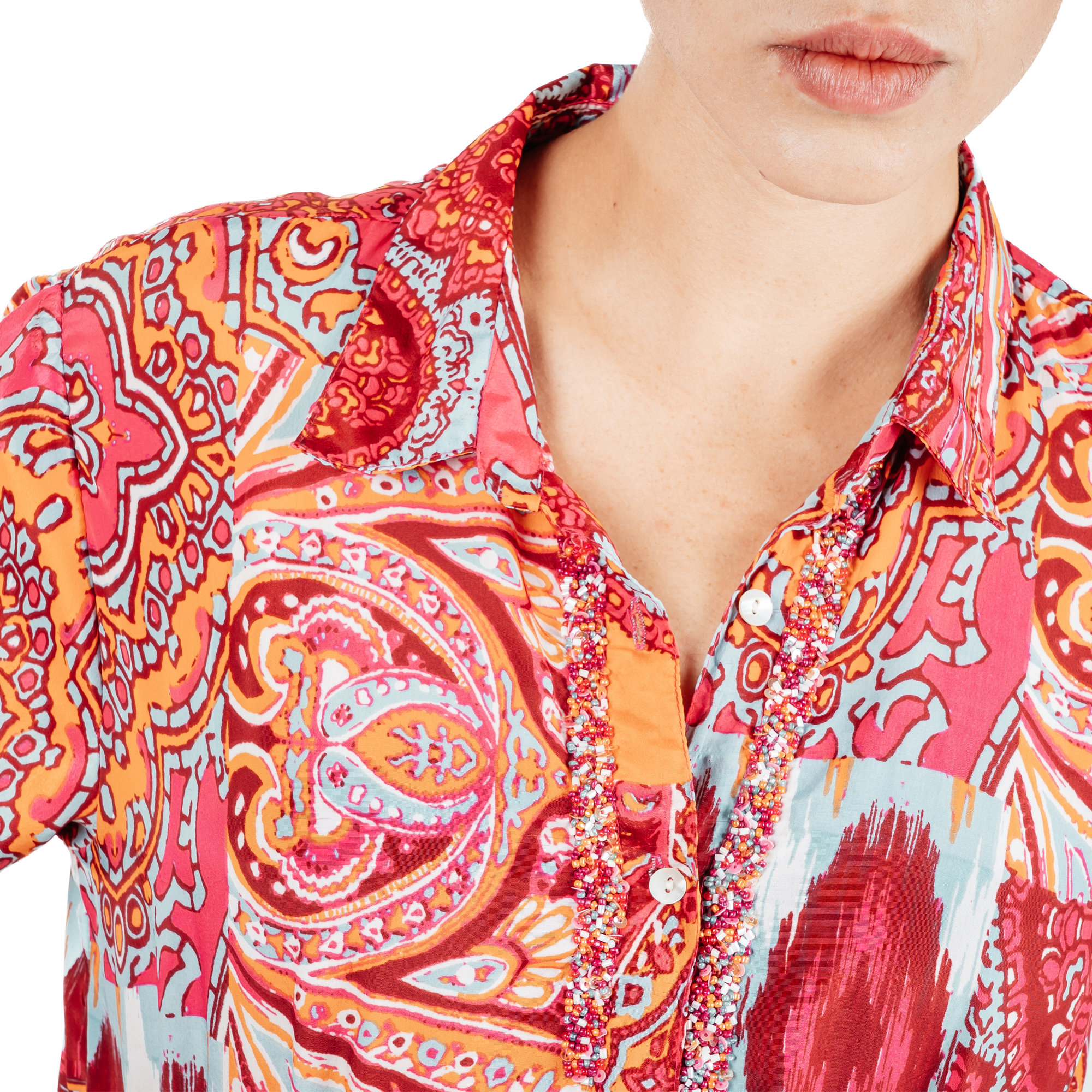 Isla Bonita Multicolor Patterned 100% Silk Shirt Dress