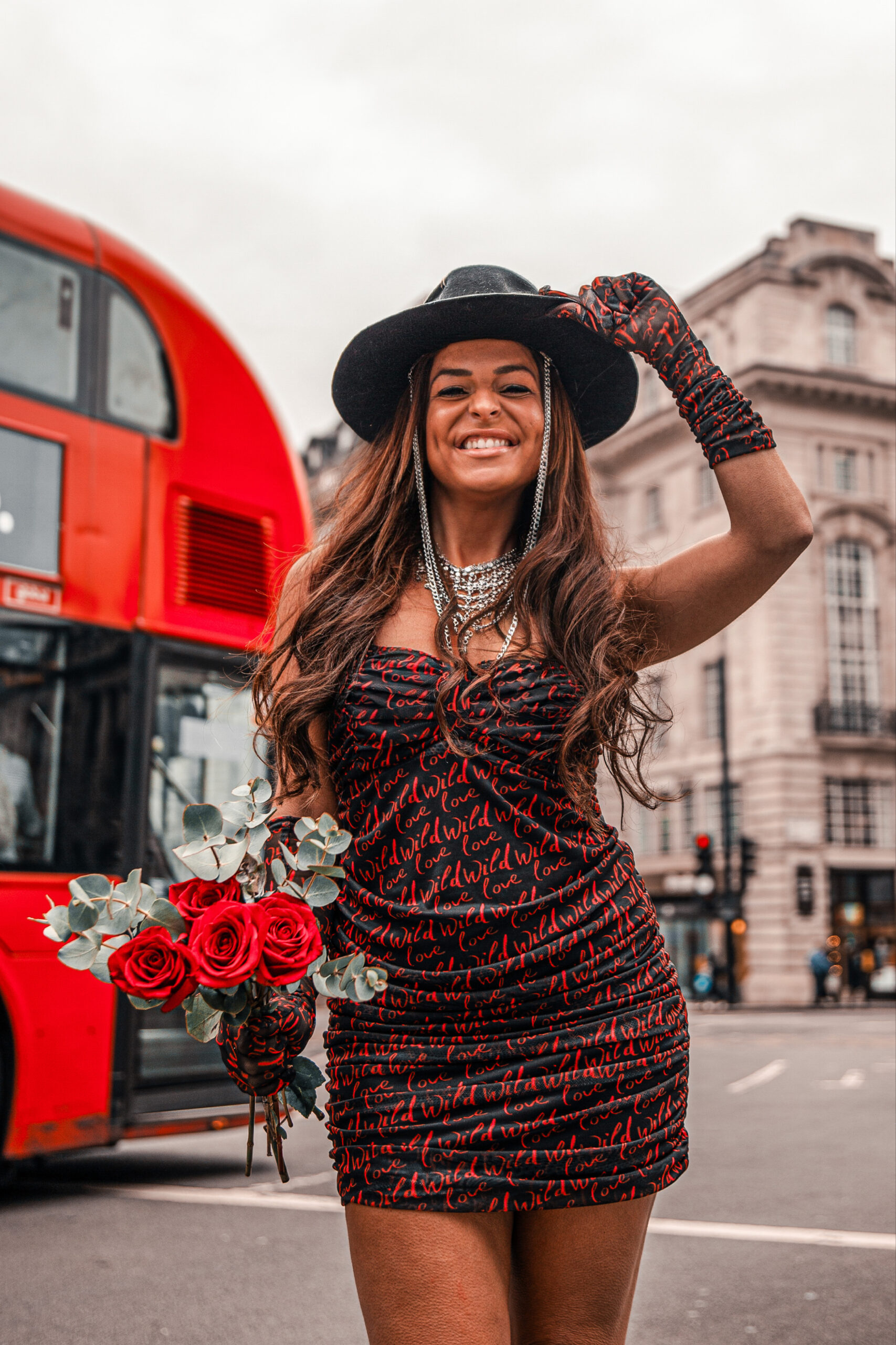 The Amari Dress is your secret weapon for a night out. In bold black with a sizzling “wild love” message in red, this strapless stunner, when paired with its matching gloves, guarantees an entrance that won’t be forgotten.