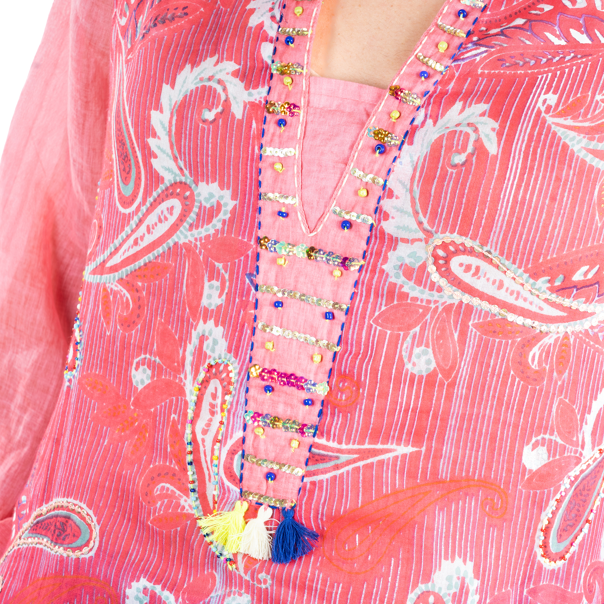 Isla Bonita Fuxia Lachouri Print Beaded Top