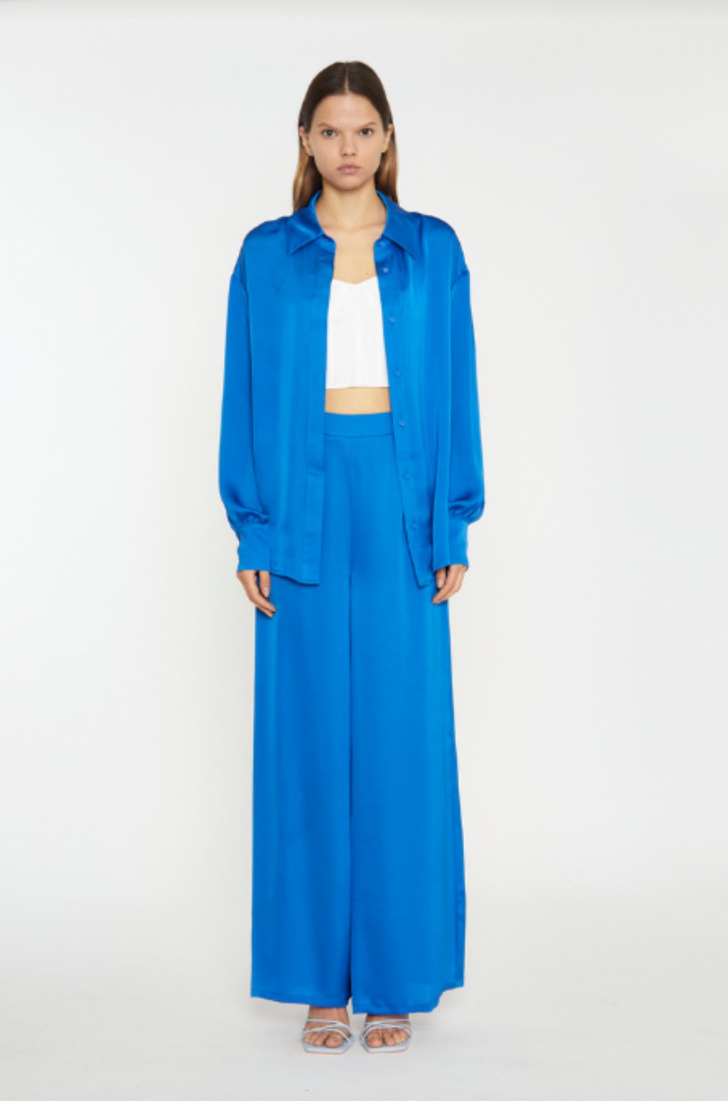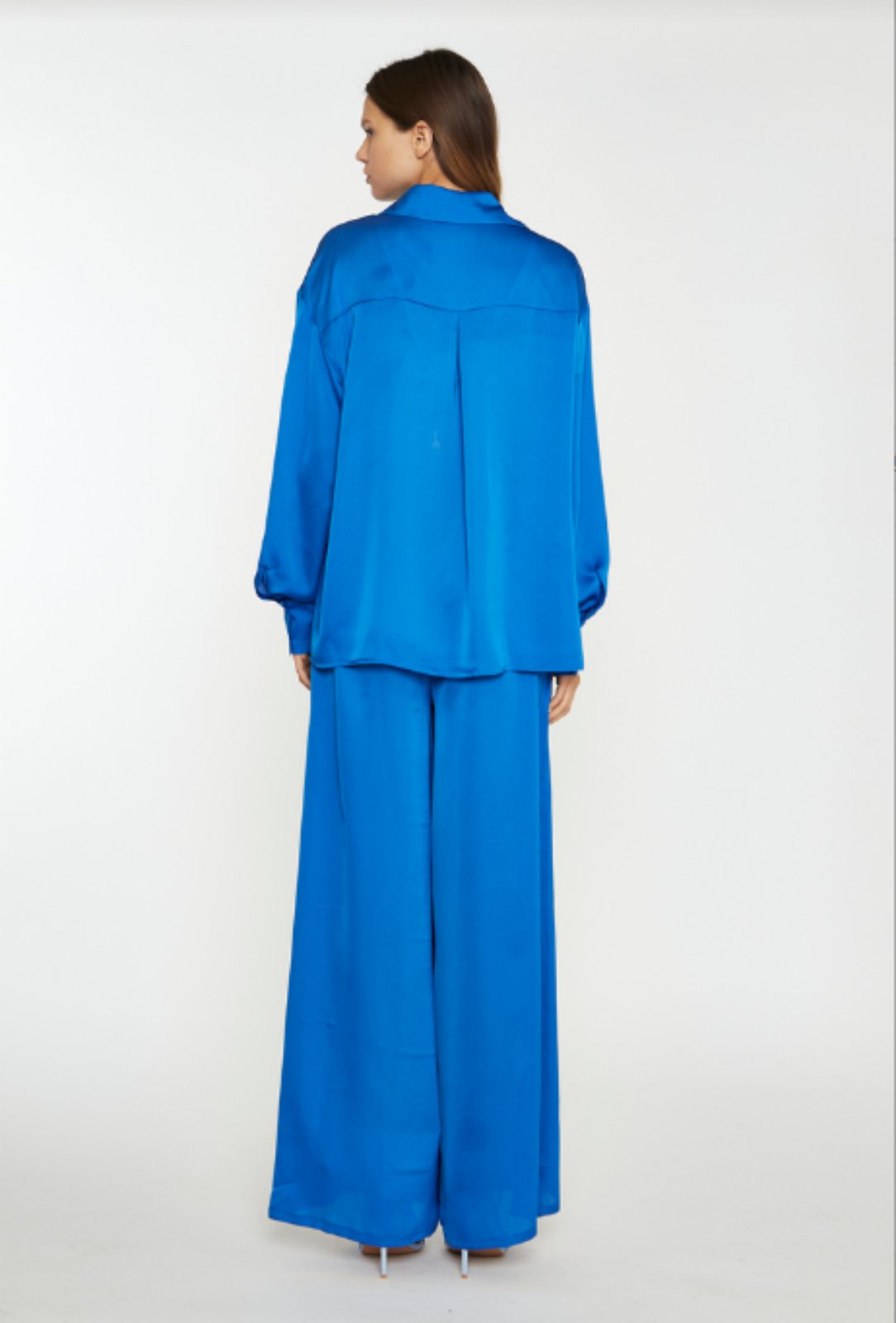 Glamorous Satin Electric Blue Color Wide Leg Trousers